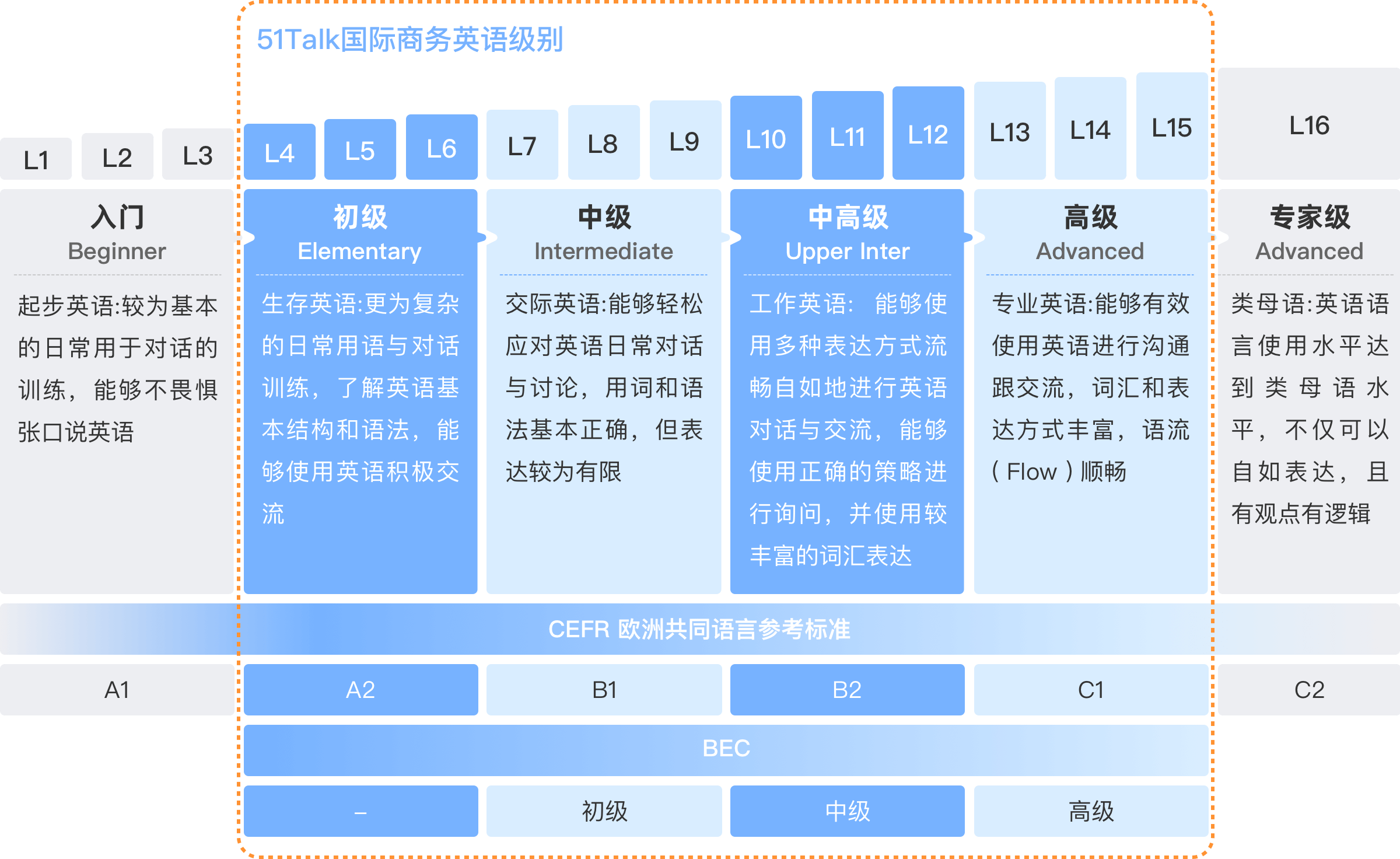 基于欧洲共同语言框架CEFR体系,对标权威商务标准,紧贴BEC考试要求,覆盖商务话题结合全球经济形势及时政变化,更新热门商务话题、词汇及商务技能,学习路径清晰。